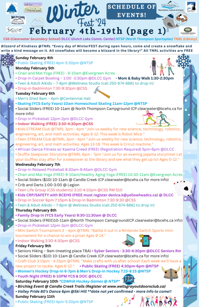 Check out the schedule for WinterFEST 2024! The schedule has been colour coordinated by venue. It all starts February 4!