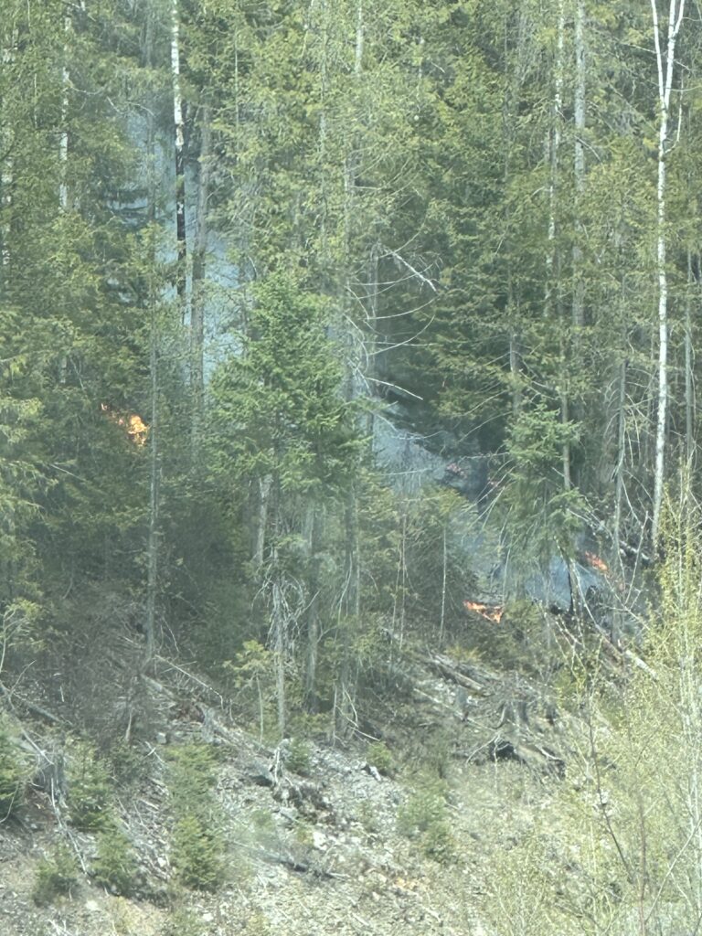District of Clearwater Fire Department Crews and BC Wildfire are currently responding to two wildfires burning within close proximity—approximately 3 km apart—one within the District of Clearwater boundaries and one just outside. These fires are burning at Rank 2-3 intensity, meaning they are surface fires with moderate flame and spread.